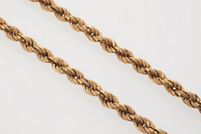 featuring 18ct yellow gold twisted rope design links, stamped '750' with Italian Hallmarks 'Star 1 AR' together with gold rope earrings featuring 18ct yellow gold twisted rope design with huggy fittings (2)