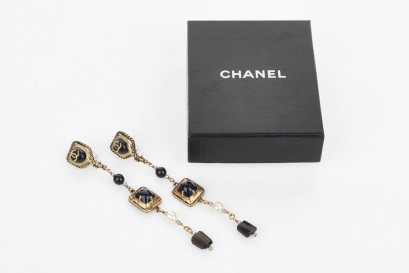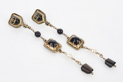 Lot Description:Chanel - Gripoix and Pearl Drop Costume Earrings
