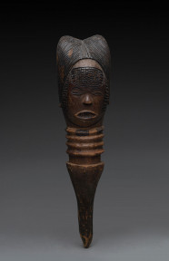 Lot Description:A figural architectural finial, carved wood with pokerwork highlights, Kuyu tribe, Gabon
