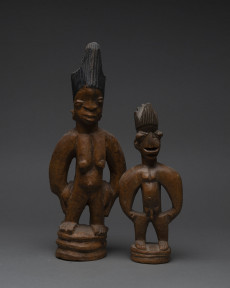 Lot Description:Two Ibegi figures, carved wood with remains of painted finish, Yoruba tribe, Nigeria