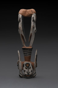 Lot Description:A food hook, carved wood and shells with earth pigment decoration, Papua New Guinea