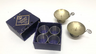 Lot Description:A Set Of Selangor Pewter Napkin Rings & Pair Of Silver Plate Candle Holders
