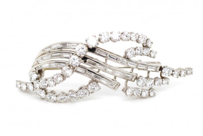set with 28 baguette diamonds and 40claw set brilliant cut diamonds. Total diamond weight 5.77ct. Colour G/VS-SI. total weight 16gms. Valuation available. -