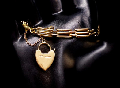 marked Birmingham 375 1972 to the heart padlock clasp. Approx width 6mm, length 16cm, weight 11.4 grams -