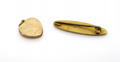 Lot Description:Antique 9ct yellow gold brooch and a 9ct silver