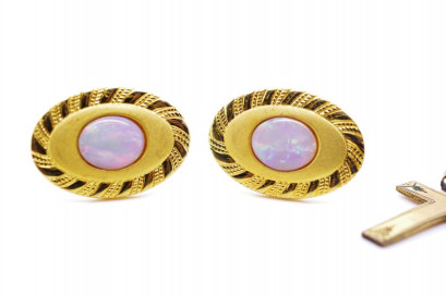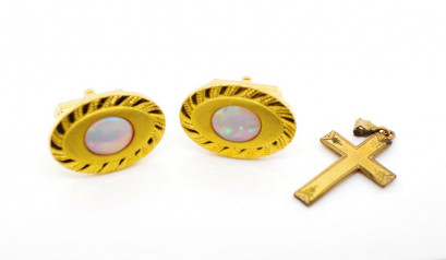 Lot Description:Antique 9ct silver lined cross & opal cufflinks