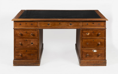 Lot Description:English mahogany pedestal desk with black vinyl inlay, English, late 19th century
