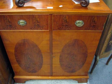 Lot Description:Pale timber cupboard with simulated drawers