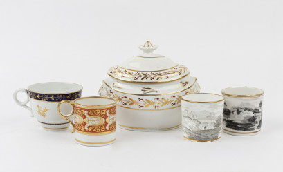 comprising three coffee cans, a tea cup and a Newhall covered sucrier