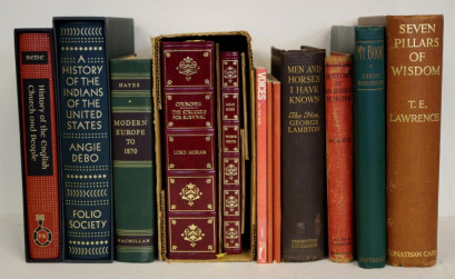 including My Book (Sarah Robinson), Seven Pillars of Wisdom (Lawrence), Churchill The Struggle for Survival (leather bound, Moran), Gold Mine (leather cover, Wilbur Smith), History of the English Speaking People (Bede), A History of Indians of the United States (Angie Debo) and others -