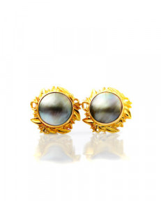 Lot Description:A Pair of Black Mabe Pearl and Gold Earrings