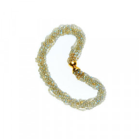Composed of nine strands of polished labradorite beads to a gold clasp, gross weight approximately 92.00 grams, the clasp in 18ct gold, length 44.00cm. -