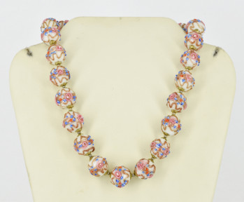round white beads, enhanced with pink, red, gilt and blue decoration. -