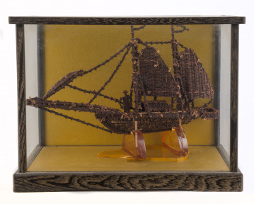 Lot #621 - KAPAL AMBON model boat in cabinet, made from clove spices