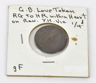 engraved 'RG to HR' in heart, on a Queen Victoria coin. -