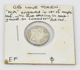 well engraved with leaf design and monogrammed KCA on observe, on a King Edward VII coin. -