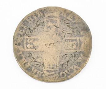 engraved '1763 - Polly Reddish John Browne', on a King William III (1650-1702) crown, 1763. -