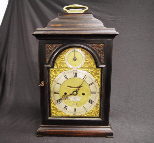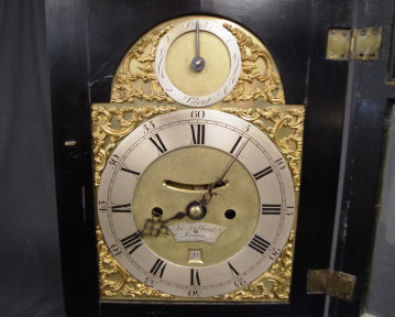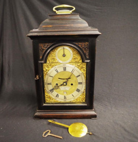 8 day with strike, stike/silent in arch, date aperture, maker: John Hubbard London, with pendulum and key, working when tested, height 44cm approx -