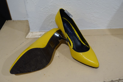 Lot Description:Vintage Fascinate yellow dress shoes with silvered heels