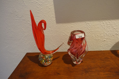 Japanese minor chip on base, not visible, height 19 cm and Murano art glass pink and clear slab vase, height30 cm -
