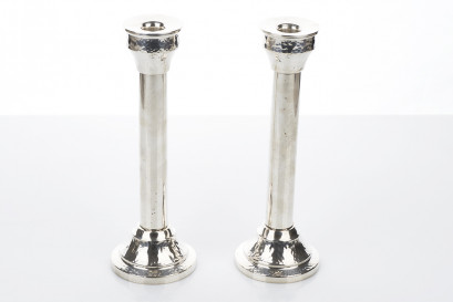 plain strait columns on circular stepped bases, hammered bases and knops, marked '925'