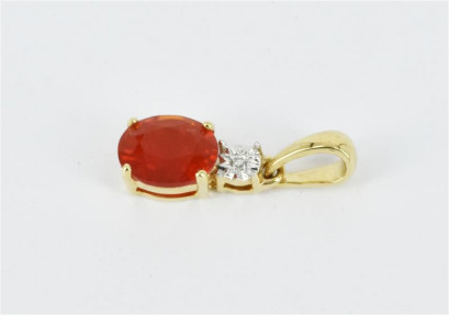 featuring an oval cut fire opal of 0.65ct, and a single diamond of 0.01ct, 9ct white and yellow gold. Weight 0.7grams . -