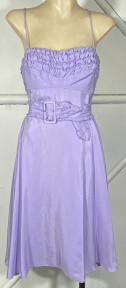 Lot Description:Scanlan & Theodore: Lilac Silk Satin Shoestring Strap Dress, Ruching to Bodice & Matching Belt