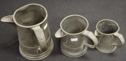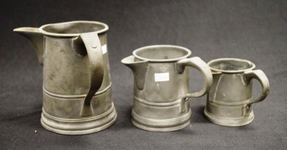 Lot Description:Set Three Victorian pewter ale/beer jugs