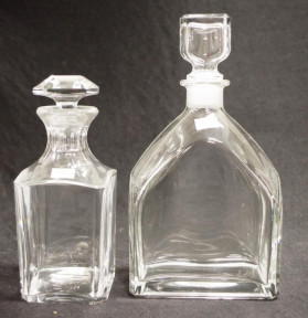 marked to base, (height 21cm approx); together with another crystal spirit decanter, (height 25cm approx). -