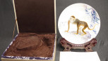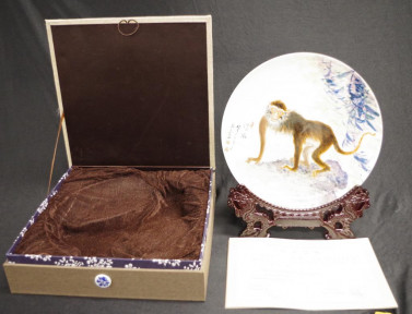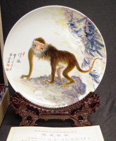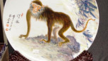 Monkey image, signed lower left in characters by XU-SHENGGU, with Certificate of Authenticity, in fitted case, with wood stand, character marks to base, (diameter 30cm approx). -