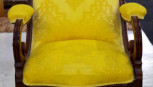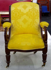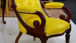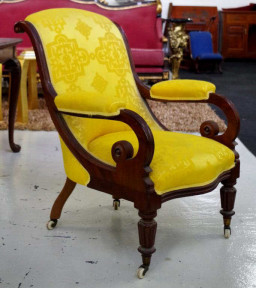 with scrolled arms, 71cm wide, 76cm deep, 97cm high approx -