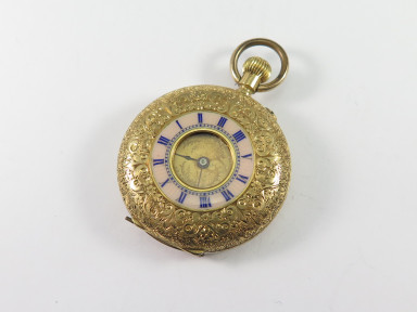 Lot Description:An 18ct Gold Half-Hunting Case Fob Watch