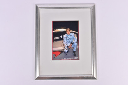 Lot Description:HAKKINEN: A framed picture of Mika Hakkinen. Signed by Mika Hakkinen