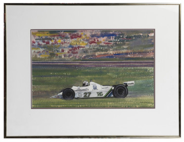 Lot Description:ALAN JONES: An original gouache by Derek Margetts (1989) depicting Alan Jones driving the Williams FW07