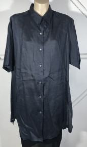 Lot Description:Saba Shirt, Melbourne: Indigo Short-sleeve Long-line Over Shirt, Shell Buttons & Slits to Sides