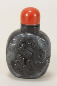 Lot Description:Chinese Carved Black and White Jade Snuff Bottle