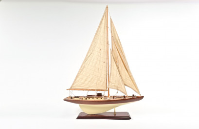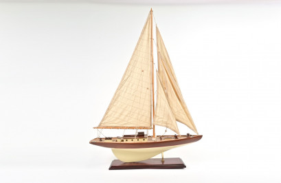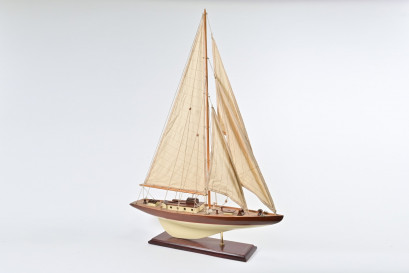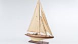 Lot Description:MODEL YACHT: A vintage style pond yacht on stand