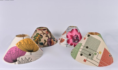 Lot Description:LAMPSHADES: Three printed linen lampshades and another