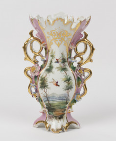 Lot Description:A painted and gilt porcelain landscape vase, 19th century
