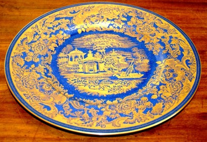 Lot Description:Wedgwood Powder Blue Lustre Wall Plate With Gilt Oriental Style Decoration