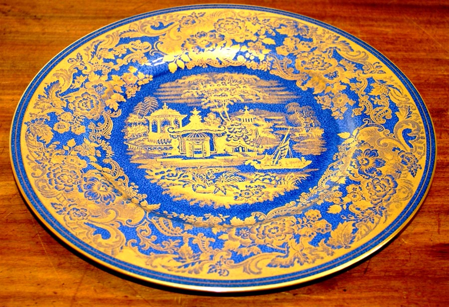 Lot #348 - Wedgwood Powder Blue Lustre Wall Plate With Gilt Oriental Style Decoration