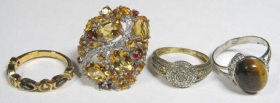 includes Lulu Flamingo silver gilt gem set ring size M6 1/4 Tigers Eye ring size R9 and Citrine ring size N7(4) -