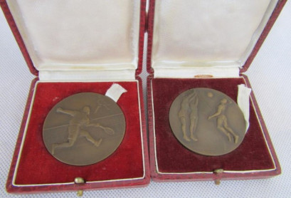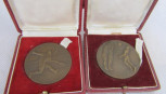 Lot Description:Two French Deco bronze sporting medallions boxed