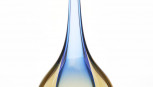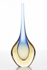 hand blown glass, clear, yellow, and blue, of teardrop form, inscribed to base 'L. Onesto Murano Italy'