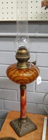 Lot Description:Antique French oil lamp, amber