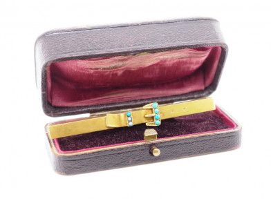 Lot #37 - Victorian yellow gold & turquoise brooch