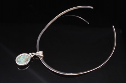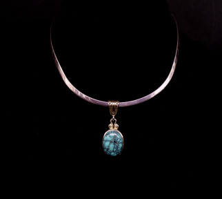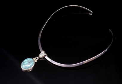 Lot Description:Turquoise & silver pendant on a silver torc choker