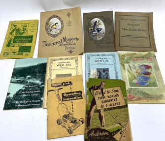 includes Water Conservation and Irrigation in New South Wales, Sydney Government Printer, 1928 + The Tale of "Bluey" Wren by Neville W.Cayley + An Illustrated Handbook on the Australian Wattles by Edith Coleman, 1943 + The Australian Aquatic Life, Vol.1 No.1 1935 + others, condition varies [10] -