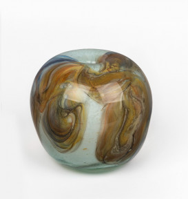 decorated with swirls of blue, amber and opaque white