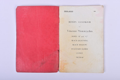 Lot Description:VINCENT: A 1955, eighth edition of 'VINCENT Rider's Handbook FOR THE SERIES "B" and "C" 998 c.c. BLACK LIGHTNING